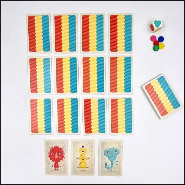 Pero a no forzar mucho la suerte, que puede fallar y si das vuelta un monstruo de otro color, no te llevarás nada y todas las cartas vuelven a colocarse dadas vuelta en la grilla.