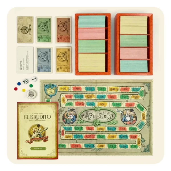 El Erudito es un juego de mesa de preguntas en donde no gana el que más sabe sino el que mejor razona. Es ideal para jugar en equipos. Un juego de mesa que combina ingenio, cultura general y apuestas en más de mil consignas.
